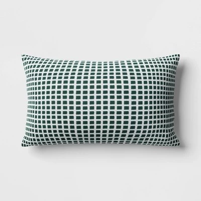 Brighten up your outdoor seating space with this Micro-Grid Rectangular Outdoor Lumbar Pillow from Room Essentials™. Made from a soft fabric with soft filling, this rectangular lumbar pillow lends extra comfort to outdoor lounging or relaxing, while the UV-resistant properties help it withstand the harsh sun rays. Showcasing a micro-grid lines design in a solid hue with knife-edge detailing, it’s sure to bring on-trend flair to your patio, balcony or porch.