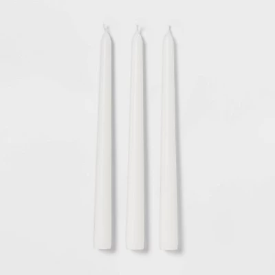 Light up your space with the 12pk Fragrance Free Taper Candles White from Room Essentials™. These unscented candles are perfect for setting the mood without overpowering your senses. Crafted from paraffin wax, each candle comes with a single wick, offering approximately 6 hours of burn time. Whether you’re hosting a dinner party, creating a cozy corner, or simply enjoying a quiet evening in, these tapers bring the right amount of soft light you need. With a dozen in each pack, you’ll have plenty to use for days.
