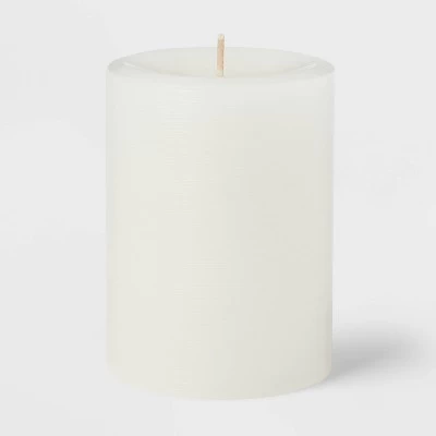 Light up your space with the 3″ x 4″ Fragrance Free Candle White from Room Essentials™. This unscented candle is great for setting a minimal, bright ambiance. Crafted from paraffin wax, it’s designed to go on for longer with an approximate burn time of 65 hours. With a single wick, this pillar candle is ideal for setting the table for dinner parties or enjoying a quiet night in.