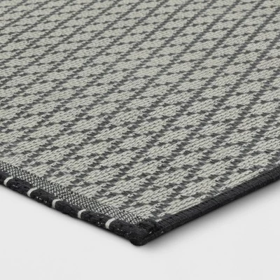 Elevate the look of your flooring with this Small Diamond Area Rug from Room Essentials™. This rectangular area rug in dark charcoal gray and white showcases a small diamond pattern for a contrasting look that blends with any decor. The spray latex backing keeps the rug firmly in place, while the flat pile height makes it perfect for frequently used areas like your living room, hallway or entryway.