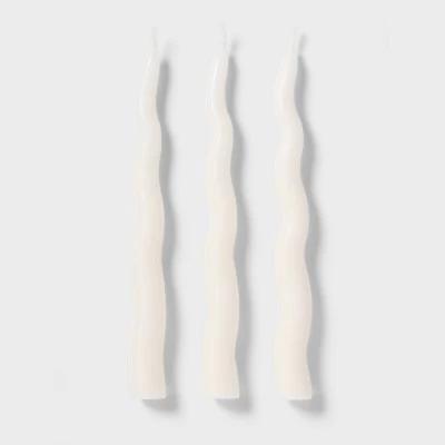 Brighten up your home with the 6pk Taper Candle Set in White Wavy by Room Essentials™. These unscented candles, made from a blend of palm and paraffin wax, offer up to 21 hours of burn time each. Their elegant wavy design adds a touch of sophistication to any setting. Perfect for both everyday use and special occasions.