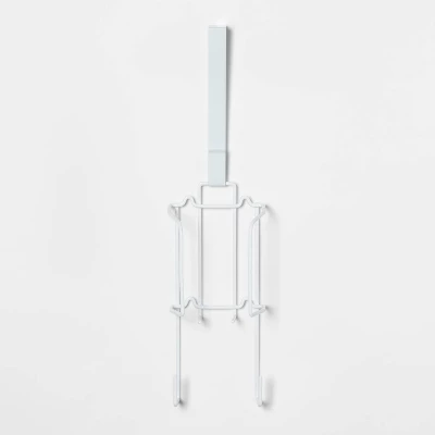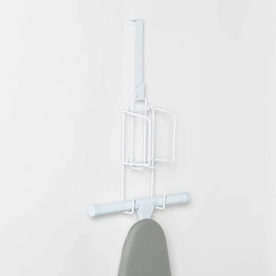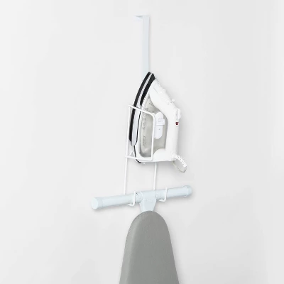 The Over-The-Door Caddy from Room Essentials™ offers a convenient way to keep your laundry room neat and organized. Made from metal, this white over-the-door caddy is easy to mount to the back of your door, and it has a variety of hooks and hangers to hold your iron and ironing board in place. This metal caddy comes in a solid white finish — easy to pair with the rest of your decor for a functional and stylish piece.